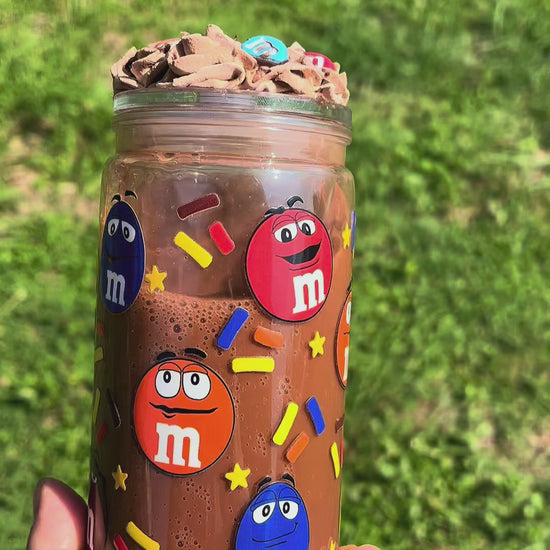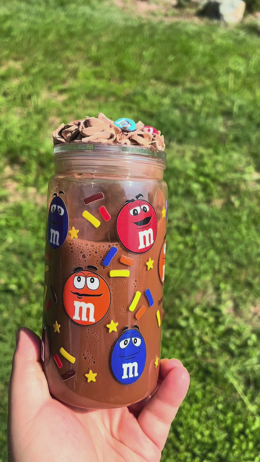 This adorable chocolate candy milkshake is topped off with total nostalgia! These tumblers feature a whipped lid which is sealed with safe based resin. The cup is acrylic not glass.