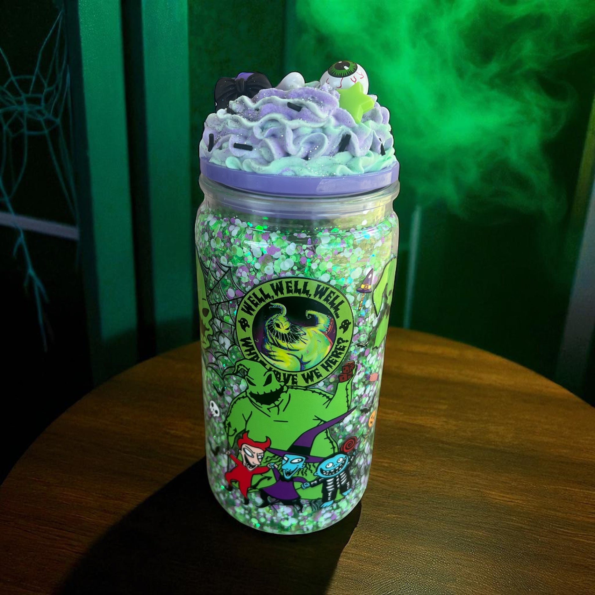 This fun cup is handmade in Gladstone qld. It features an epic dual tone lid of light purple and green with hidden slight glow in the frosting. This one is layered with pops of purple and neon greens!